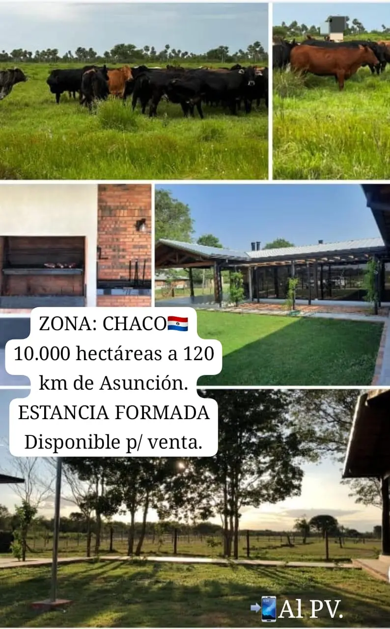 Ubicación: está a 120 km de Asunción, y se encuentra a 30 km del asfalto hasta la estancia. Zona: Pte. Hayes.