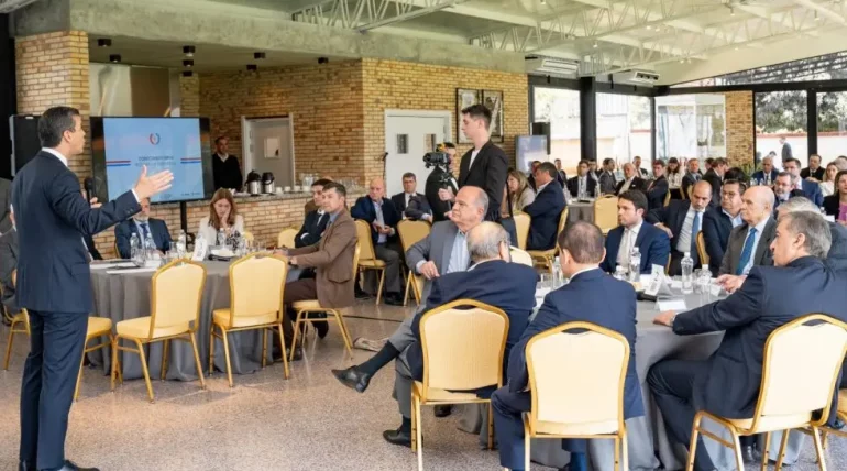 Empresários paraguaios destacaram a abertura do governo para impulsionar o desenvolvimento econômico após uma reunião com o presidente Santiago Peña e o ministro do MIC, Javier Giménez. Durante a coletiva de imprensa, eles valorizaram o diálogo entre os setores público e privado, onde foram discutidas questões importantes para a economia e propostas soluções. Brad Olofsson (Paracel) elogiou a transparência do Executivo, enquanto Alberto Acosta Garbarino destacou o respeito mútuo e a importância desses espaços para o progresso. Blanca Ceuppens (setor avícola) e Eduardo Borgognon (corretoras) destacaram a relevância dessas conversas para o crescimento do país.