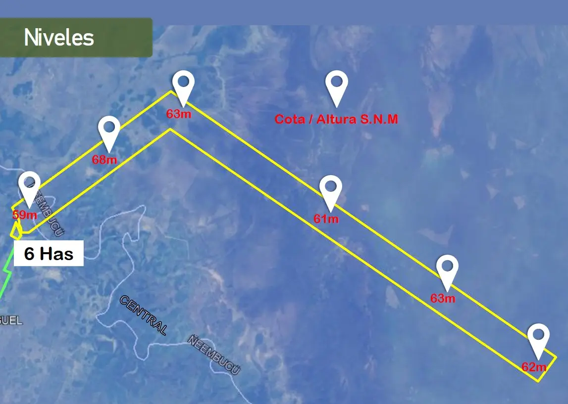 La propiedad se encuentra a 2 horas de Asunción, es apta para cualquier emprendimiento ya sea ganadero, agrícola o para reforestación, muy cercano a los arrozales de ALGISA.