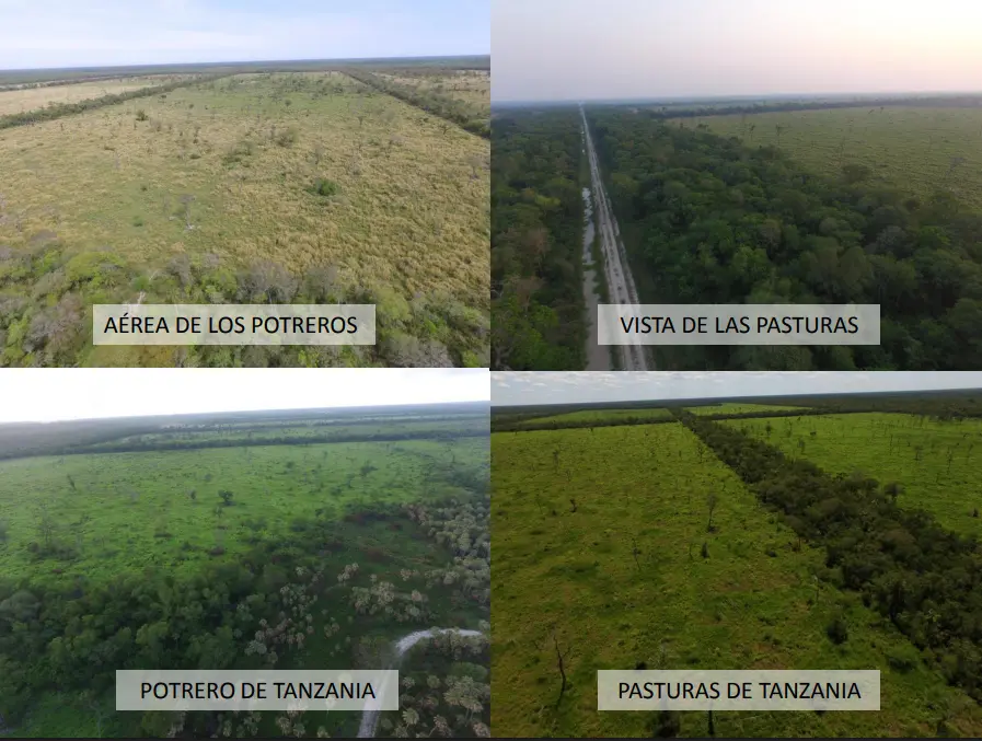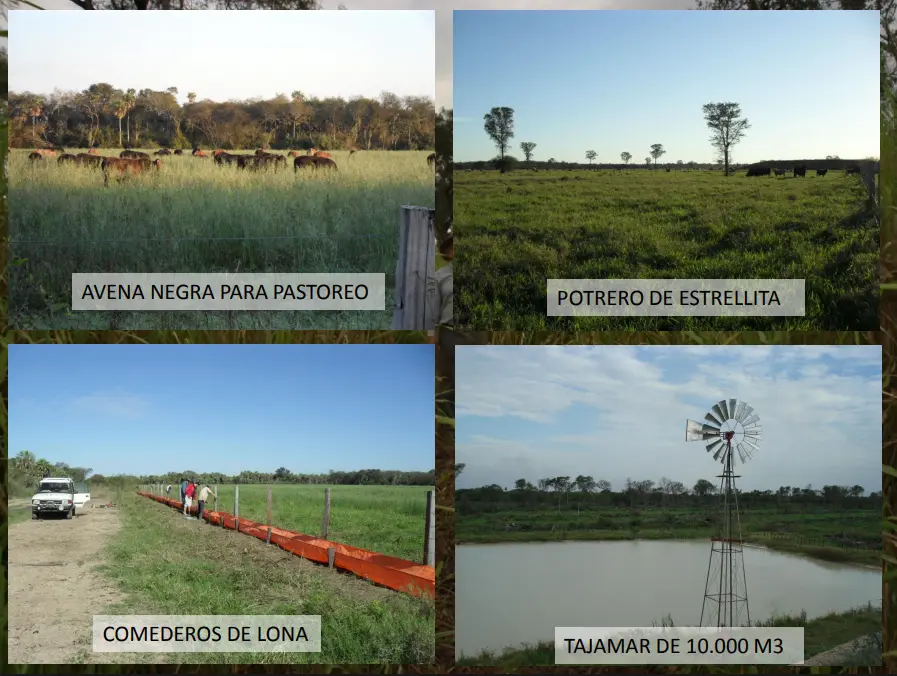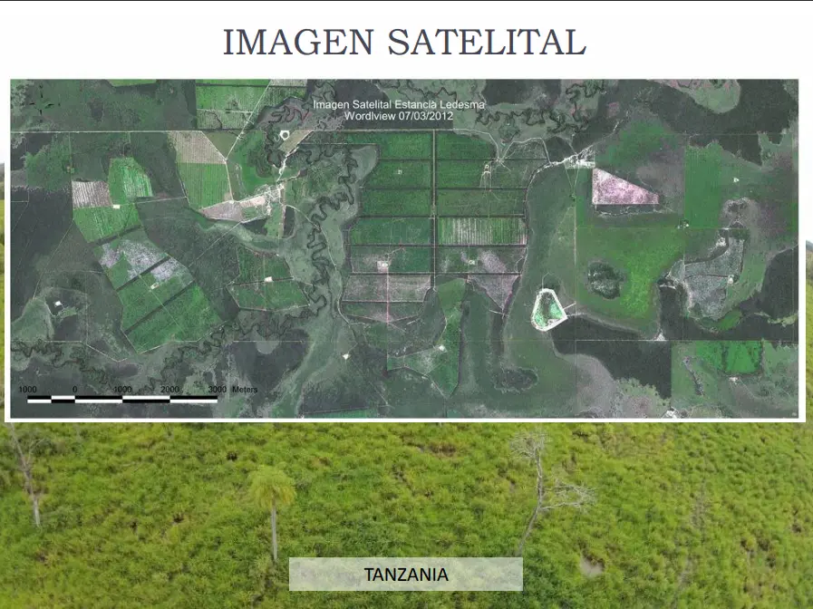 Pastagem plantada: 2.400 ha na Tanzânia (200 ha transformados em Lamina). Dividido em 38 piquetes com água.