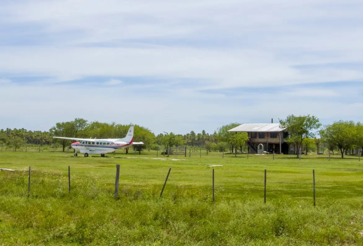 A pocos kmts de asfalto, infraestructura completa ganadera, con casa patronal, casas de personales, tinglados de máquinas y equipos, corrales completos, con brete, cepo, báscula, embarcadero, laboratorio, toda la parte ganadera es con pastura implantada, toda limpia, puede pasar a agricultura inmediatamente. Potreros múltiples con aguadas y bebederos, pozos artesianos,